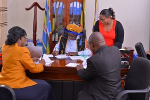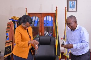 The ceremony concluded with the official handover of instruments of power to the Vice Chancellor, Prof. Pauline Byakika-Kibwika. These included his final report, office keys, car keys, the official stamp, and the academic gown, formally closing an illustrious chapter in the history of MUST.
