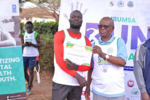 The inclusivty award was give to Mr. Rogers Nuwataho who finished the run yet physically challenged .The event also featured other games and sports, such as egg on the spoon, balloon water throwing, sprints, tug of war, and biking.