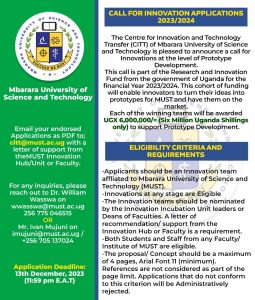 MUST CITT is pleased to announce a call for applications for innovations at the prototype level. Find the details on the flier below.