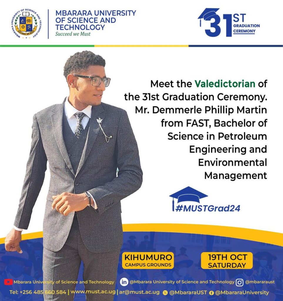 The 31st graduation ceremony at Mbarara University of Science and Technology (MUST) saw a remarkable achievement by Demmerle Phillip Martin. As