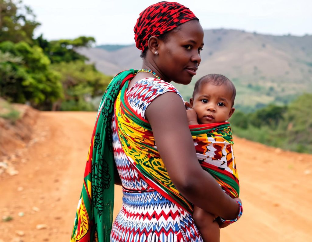 In the rolling hills of South western Uganda Kasese District, Biira adjusts the colorful cloth wrapped snugly around her waist, securing