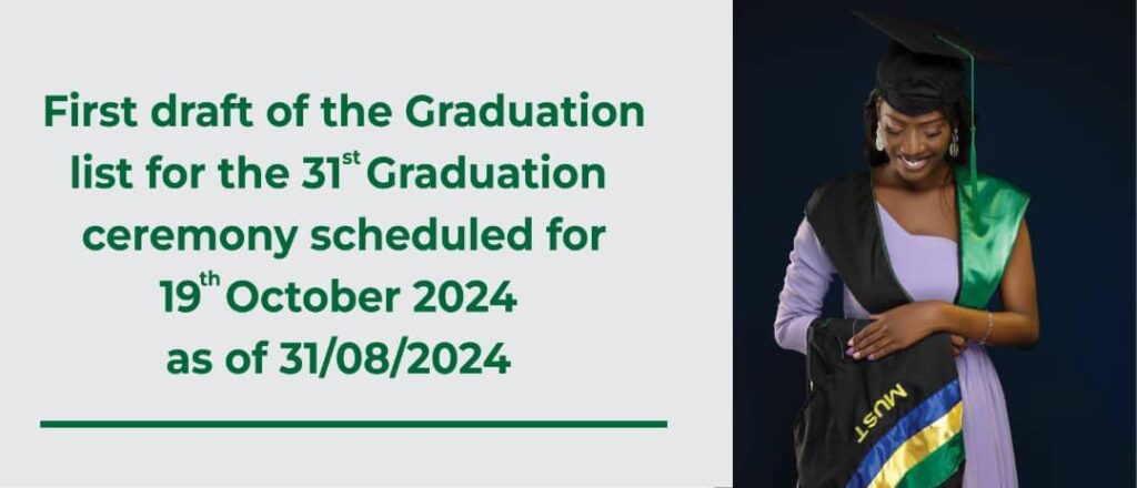 The first draft of the graduation list for the 31st graduation ceremony scheduled for 19th October 2024 as of 31st August