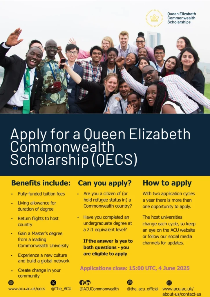 The Queen Elizabeth Commonwealth Scholarships (QECS) offer fully-funded Master’s scholarships to Commonwealth citizens. Applications are now open for cycle 2.