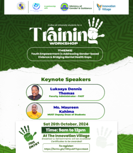 You are cordially invited to attend an impactful training workshop focused on Youth Empowerment in Addressing Gender-Based Violence and Bridging Mental Health Gaps