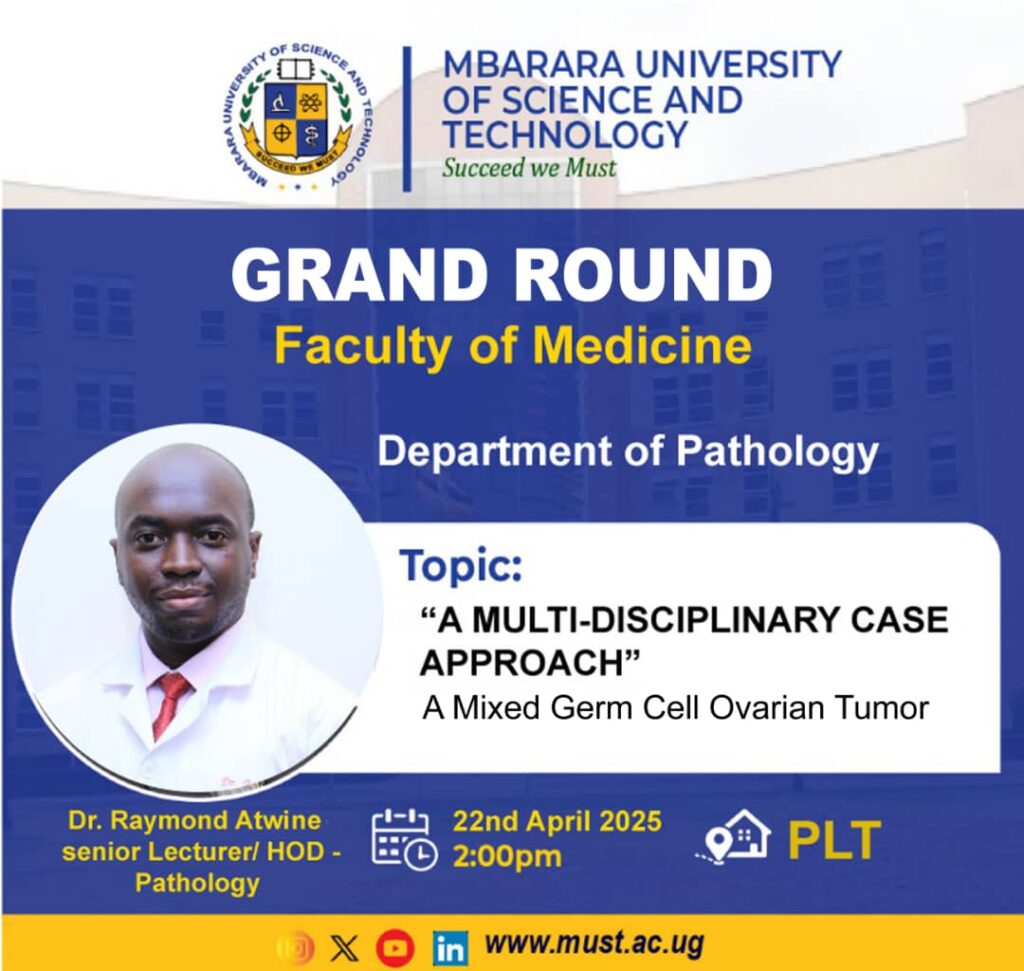 This Grand Rounds session will focus on A MULTI-DISCIPLINARY CASE APPROACH “A Mixed Germ Cell Ovarian Tumor.” This will be led by Dr. Raymond Atwine, a Senior lecturer at Mbarara University of Science and Technology Department of Pathology. Dr. Raymond Atwine is the Head of Department Pathology.