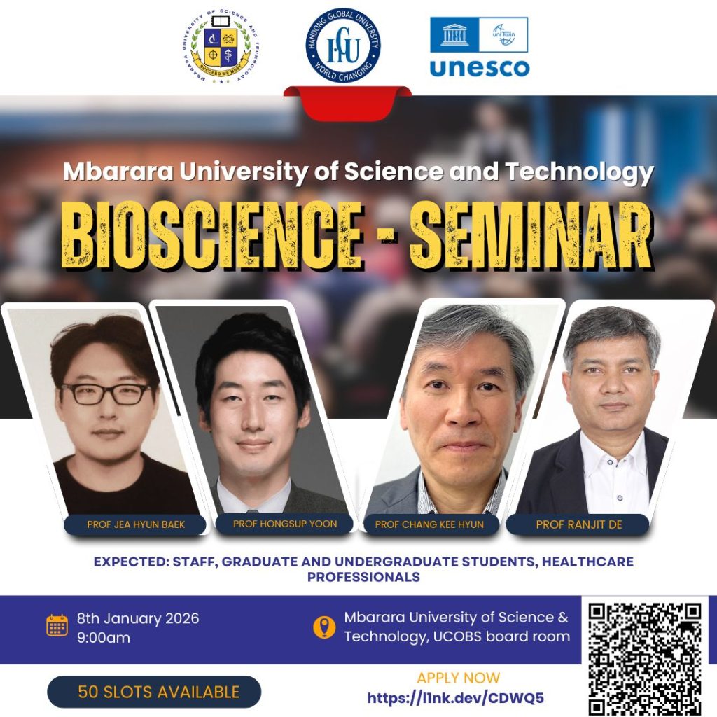 You are warmly invited to a Bioscience Seminar jointly organised by MUST and Handong Global University (HGU), South Korea, with which MUST has a fruitful institutional partnership.