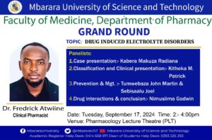 This will be Moderated by Dr. Fredrick Atwiine, an assistant lecturer in the Department of Pharmacy at Mbarara University of Science and Technology (MUST). He is a clinical pharmacist with a Master of Pharmacy in Clinical Pharmacy from MUST. Passionate about research and training, his expertise lies in pharmaceutical care, with a focus on optimizing patient care through evidence-based medicine.