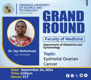 You are cordially invited to attend a public grand round on Epithelial Ovarian Cancers, organized by the Faculty of Medicine, Mbarara University of Science and Technology. This important topic addresses the increasing prevalence of ovarian cancer, particularly among women in peri-menopause, menopause, and post-menopause.