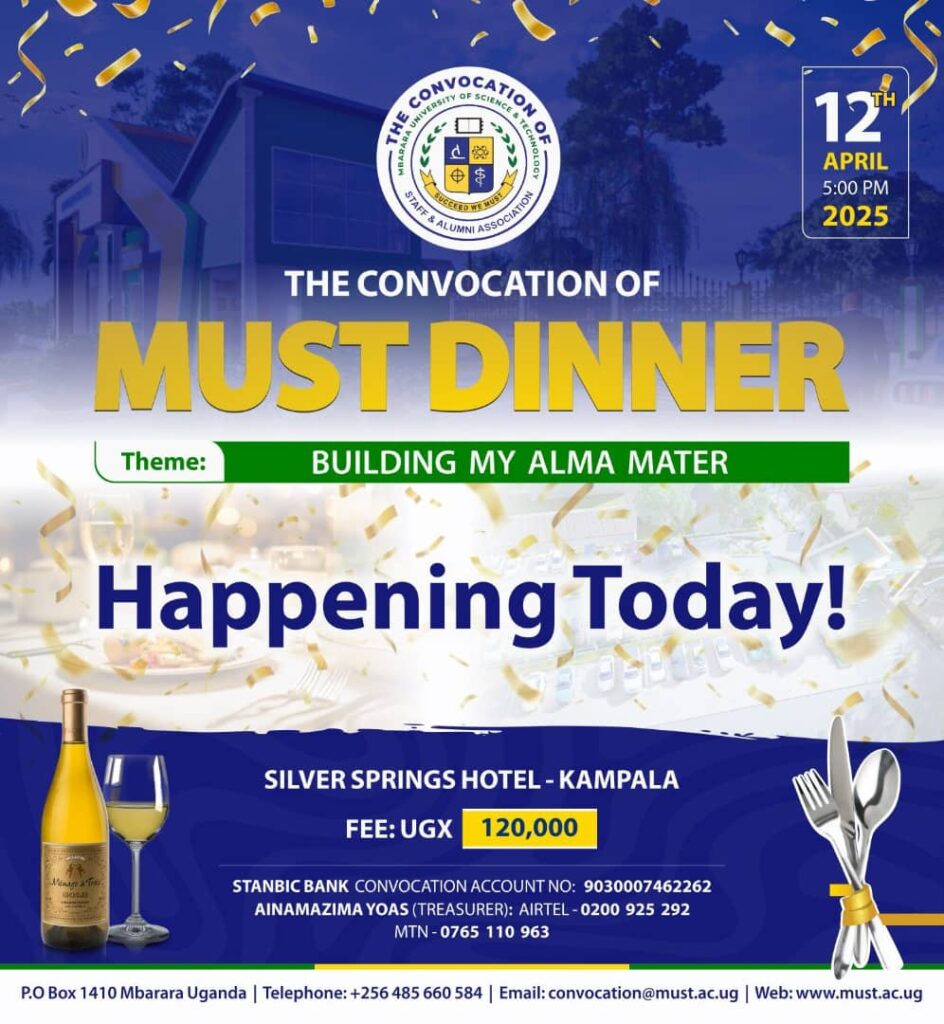 Dear Alumni, Staff and friends of Mbarara University of Science & Technology, join us for an unforgettable evening of networking, nostalgia, and impact. Check the attached poster for details, our contacts and how you can channel your support to this great cause.