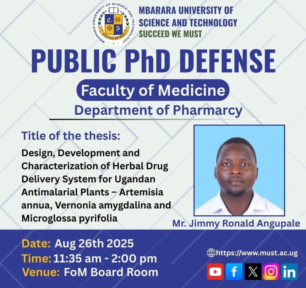 Title of thesis: “ Design, Development and Characterization of Herbal Drug Delivery System for Ugandan Antimalarial Plants – Artemisia annua, Vernonia amygdalina and Microglossa pyrifolia.”