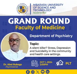 Join us for a grand round from the Faculty of Medicine, Department of Psychiatry, titled “The Silent Crisis: Addressing Stress, Depression, and Suicidality in Healthcare,” moderated by Dr. Abel Rubega, a senior psychiatrist in the department with other colleagues like: