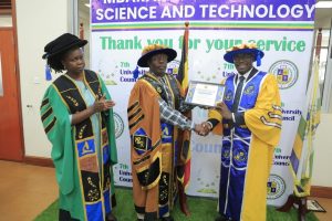 Dr. Stevens Kisaka was appreciated for his dedicated and committed service as the Chairperson of the appointment board and also the chair of the legal, rules, and privileges committee of the 7th university council of Mbarara University of Science and Technology.