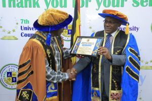 Dr. Warren Naamara was recognized for his dedicated and committed service as the Chairperson of the 7th University Council of Mbarara University of Science and Technology.