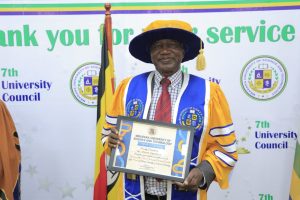 Prof. Celestino Obua was appreciated for his dedicated and committed service as a member of the 7th university council of Mbarara University of Science and Technology.