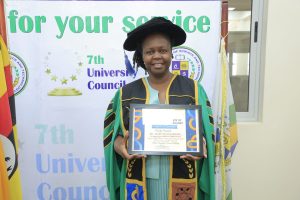 Ms Sarah Nyachwo Mwaka was recorgnized for her dedicated and committed service as the Chairperson of students’ welfare and disciplinary committee and vice chairperson of the 7th University council of Mbarara University of science and technology.