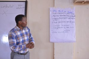 Dr. Specioza Twinamatsiko, the Co–Principal Investigator, introduced participants to epistemological and philosophical foundations in research, explaining how researchers’ worldviews influence their methodological decisions. Her engaging session encouraged participants to reflect on their positionality, research assumptions, and the implications these have on data interpretation.
