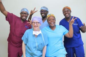 Dr. Kajabwangu with the team from Medicine for humanity at MRRH