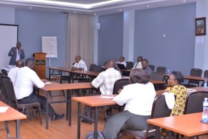 Associate Professor Edgar Mulogo, the head of the Department of Community Health and Program Director First Mile Community Health Program, FoM, facilitated the session about evidence-based planning in health care provision.  He told the trainees about the role of evidence-based planning within Uganda’s health system and encouraged the health facility managers to incorporate evidence-based planning into their health facilities as it is being recommended by the Ministry of Health.