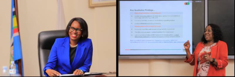 L-R: Prof. Pauline Byakika – Kibwika giving remarks; Prof. Naome W. Lumutenga giving a presentation