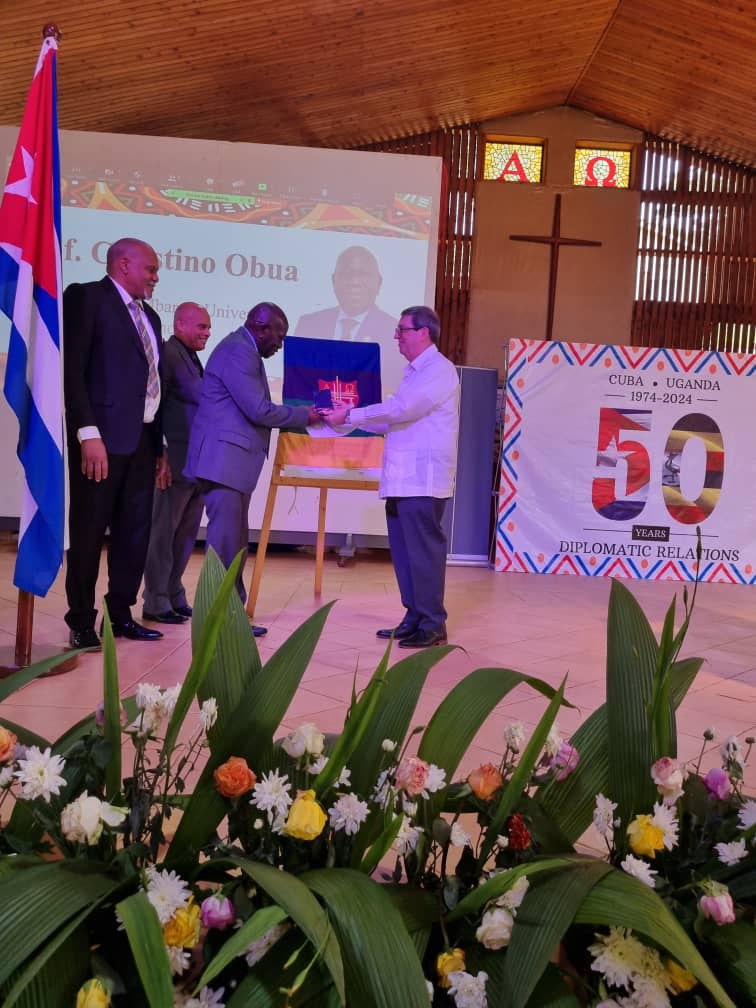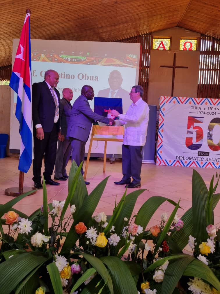 Our dear Vice Chancellor Prof. Celestino Obua received an award during the Cuba National Meeting on Solidarity with Uganda. This was presented to him by the Cuban Foreign Minister Hon. Bruno Rodriguez. Well done Prof.