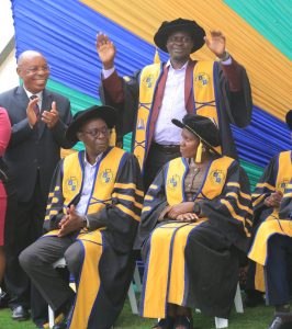 The ceremony was moderated by Nakato Angella Muyingo, the Senior Communications Officer-Public Relations , along with a freshman, Brian Akandwanira , a student studying for a Bachelor of Science in Agricultural Livelihoods and Farm Production.